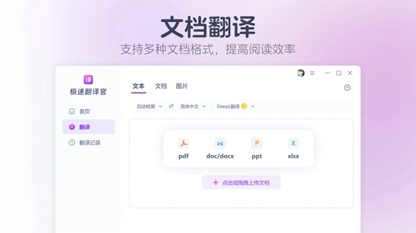 在线翻译搭配多种引擎,提高翻译精确度;文档翻译支持多种文档格式,确保翻译后的文档整洁、美观,无需用户手动调整;