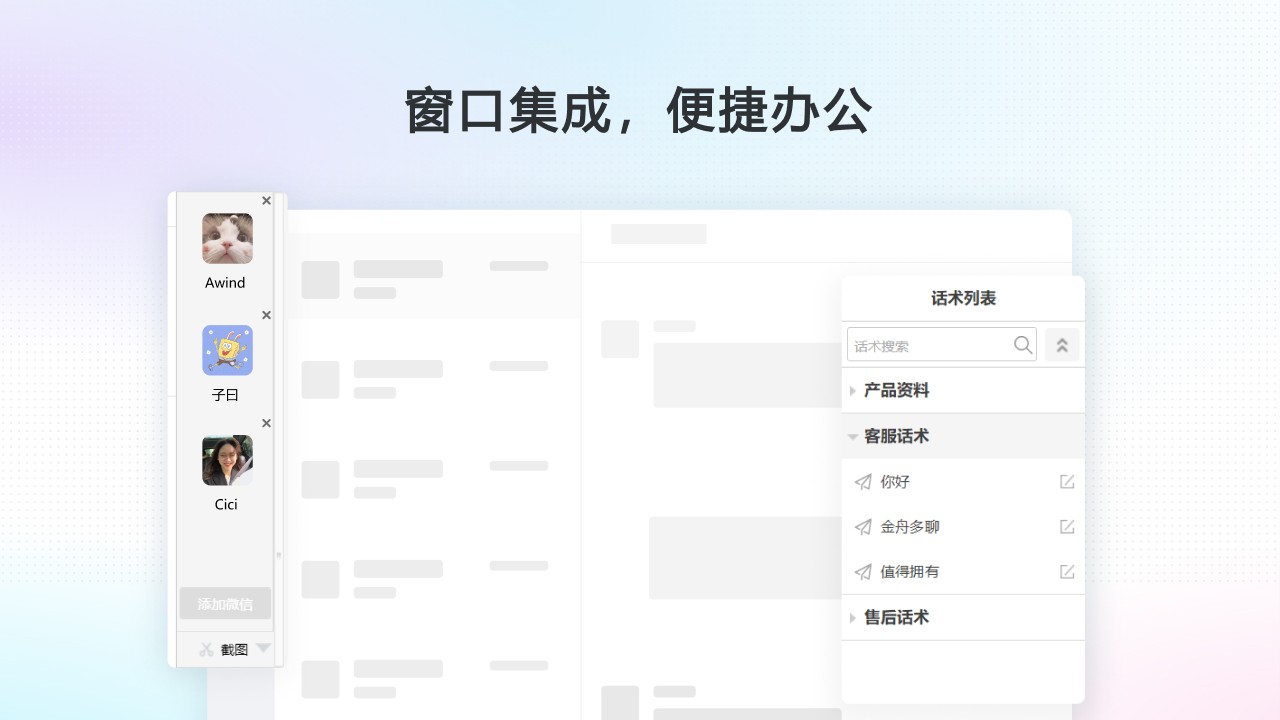 专为销售、客服设计,多账号并行结合实用管理功能,方便对接客户,提升沟通效率与服务质量。