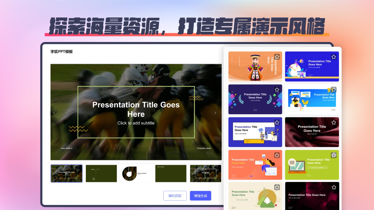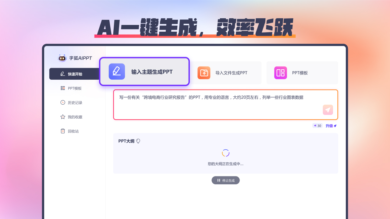输入主题或导入文件,智能系统自动提取信息、匹配模板,快速生成完整 PPT,简化制作流程。