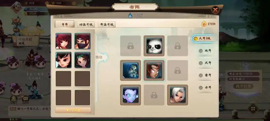 阵容搭配:九宫格布阵系统,结合伙伴职业特性(如武圣高格挡、飞羽高暴击)与阵法克制关系调整站位。