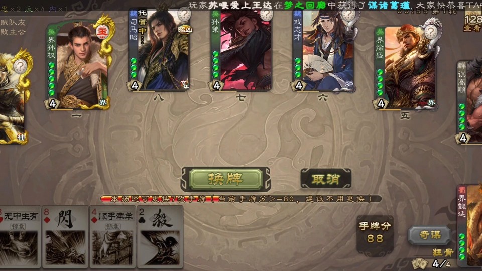 卡牌管理与战术执行:合理使用【无懈可击】反制锦囊,或利用【兵粮寸断】限制对手摸牌。