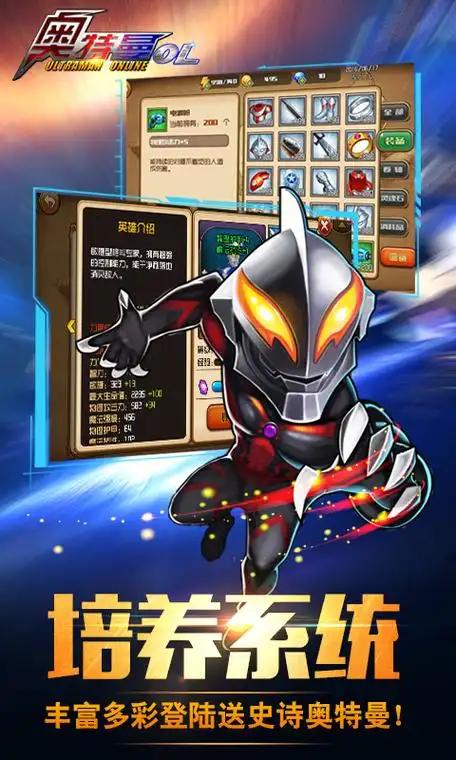 《奥特曼系列OL》是一款由上海扬讯计算机科技股份有限公司开发、获得圆谷正版授权的卡牌策略手游,完美还原了奥特曼系列经典角色、剧情及战斗场景。游戏以收集养成+策略对战为核心玩法,玩家可组建由奥特曼、怪兽、宇宙人组成的强力战队,在多元宇宙中展开冒险,体验原汁原味的特摄战斗。