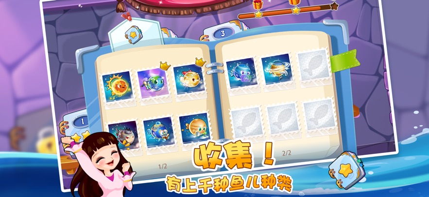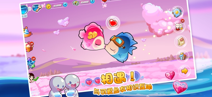 手指轻点,喂鱼、逗鱼轻松完成,点击鱼儿还会有意想不到的超独特动画效果;看着鱼儿舒畅自由的游动,让您的身心都能自由舒展。通过悉心照料你的鱼儿可以获得经验值和众多珍贵宝物!