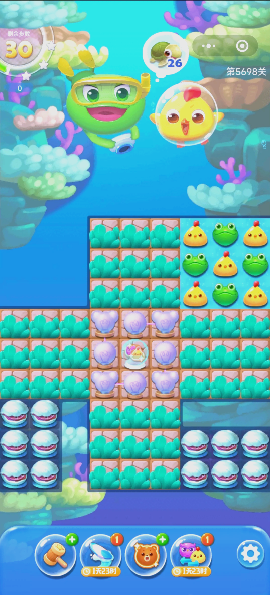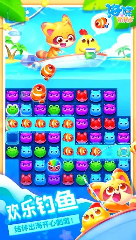 萌系角色与特效:角色动画生动,消除时触发贝壳炸弹、海星爆破、全屏清场等华丽特效,增强视觉爽感。