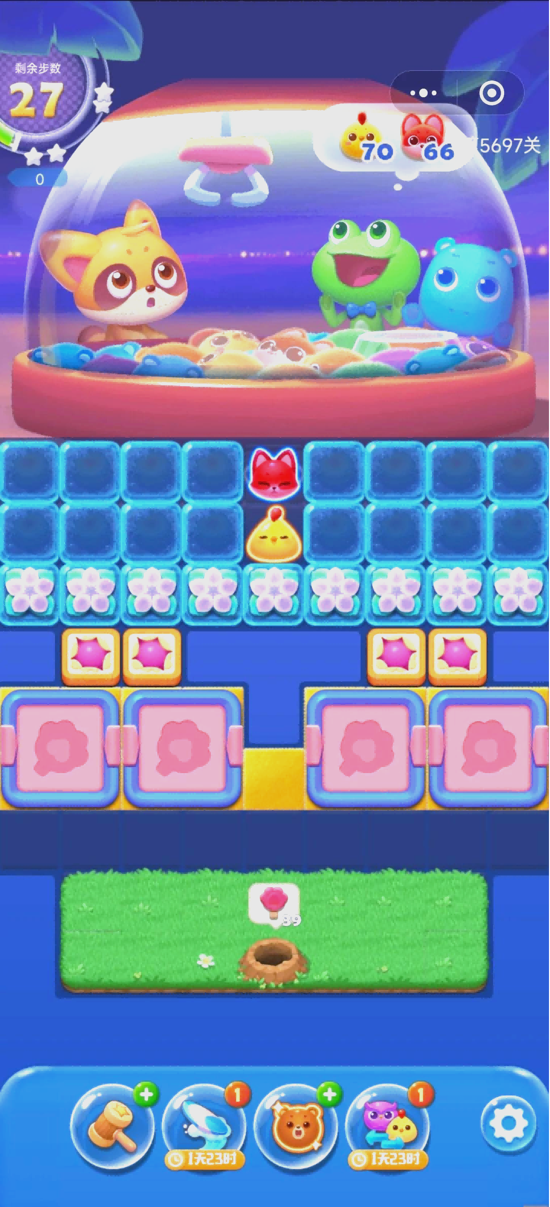 经典三消:通过交换相邻元素,达成三消或更高连击,完成关卡目标(如收集软糖、解救小动物等)。