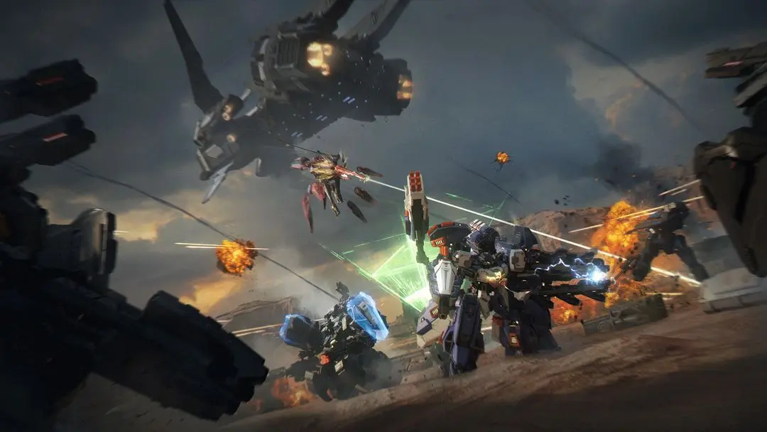 震撼战斗体验:机兵引擎轰鸣,动力强劲,战斗中激光、导弹齐发,火力全开极具冲击力。