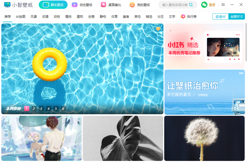 动态静态皆有:不仅有大量高清静态壁纸,还支持动态壁纸功能,可将喜欢的视频或动态图片设置为桌面壁纸,让桌面充满活力。