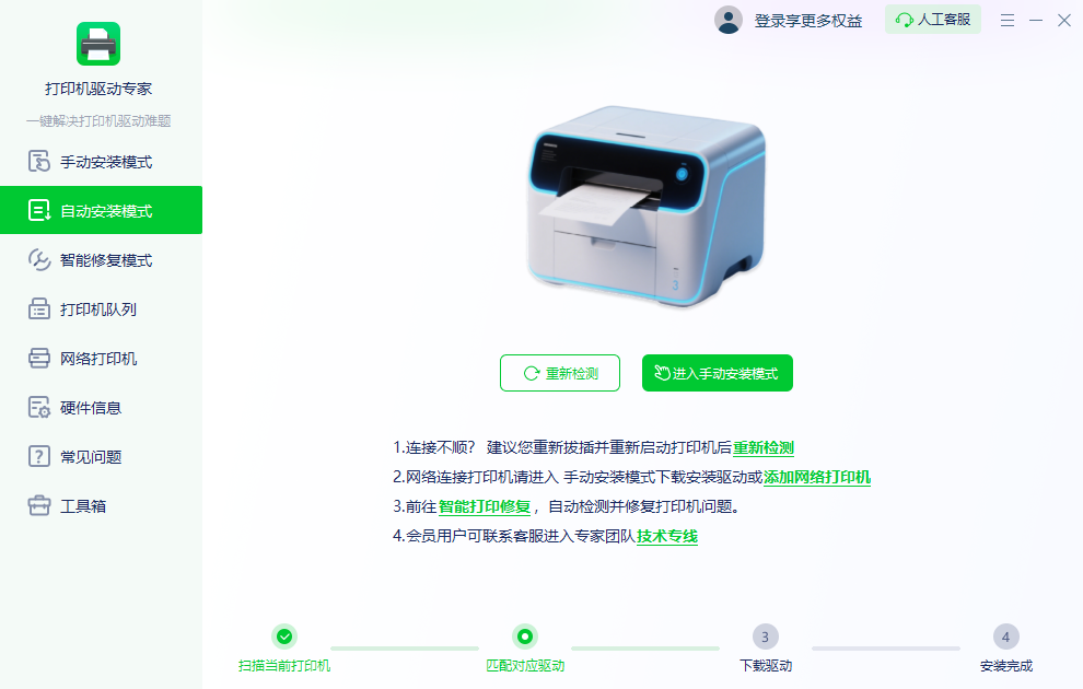 智能驱动管理功能,可以自动识别和安装打印机驱动,支持主流品牌和型号。