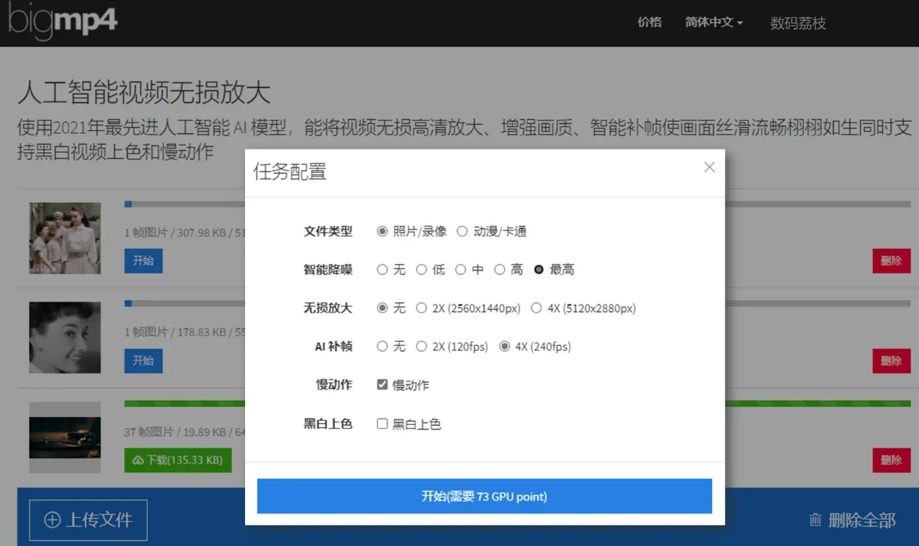 bigmp4是一款好用的图片和视频的AI工具,bigmp4电脑版之中用户可以在软件之中对图片和视频进行画质修复以及处理,利用软件自带的AI功能,对视频或者图片进行放大以及颜色画质增强,让用户可以体验到最佳的观感。