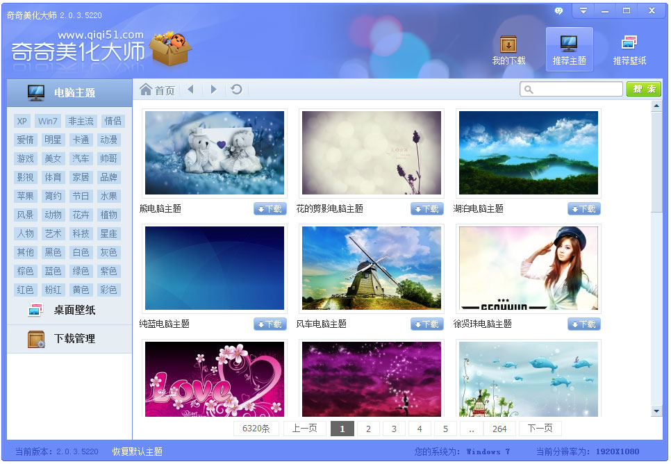 奇奇美化大师是一款好用的桌面美化软件,奇奇美化大师电脑版之中用户可以在软件之中使用各种壁纸和主题等内容,软件有着非常强大的自定义主题制作功能,可以让用户进行主题元素的替换选择,从而可以做好内容美化。