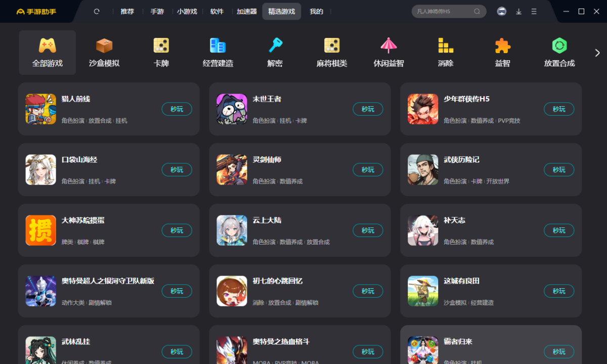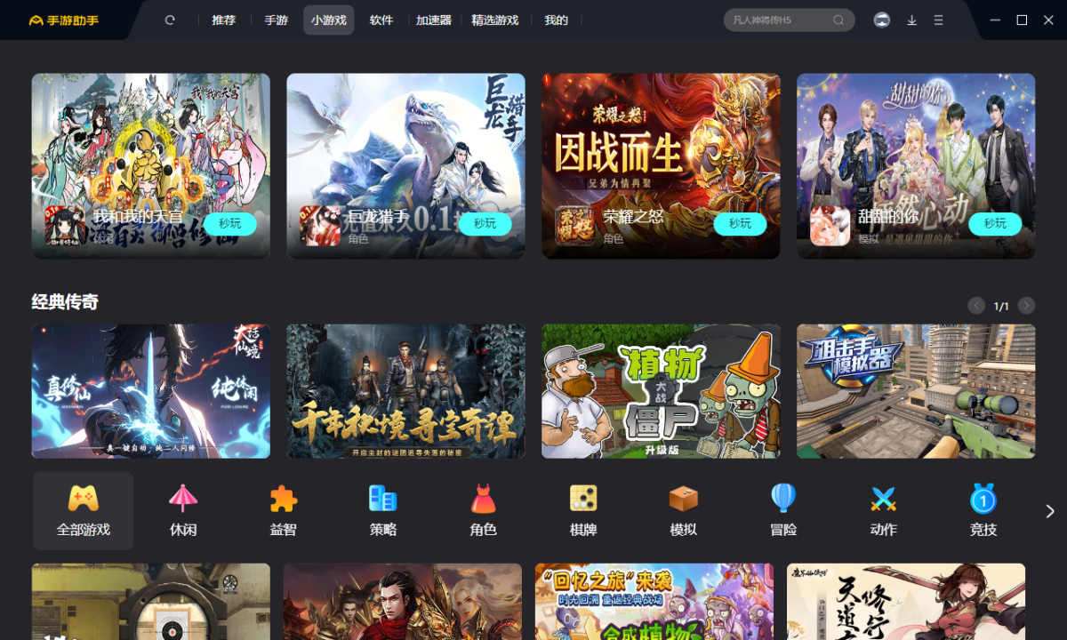 内置游戏资源库,可直接下载安装各类手游与小工具应用。