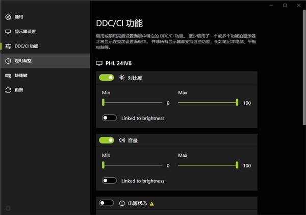 Twinkle Tray支持多显示器环境,可以同时调节多个显示器的亮度,而不仅仅是单个屏幕。你可以分别调整每个显示器的亮度,适用于使用多个显示器的用户,用户只需要点击任务栏中的图标,就能看到一个滑动条来调节显示器亮度,操作非常简单。