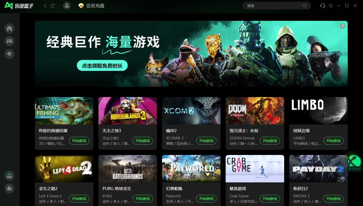 乐速游戏盒子是一款好用的游戏平台,乐速游戏盒子电脑版之中用户可以在软件之中进行下载各种想玩的游戏,游戏之中有着不仅有着经典游戏内容,还有着正版3A大作购买渠道,并且在节假日还有各种促销活动,让用户可以轻松入手想玩的游戏。