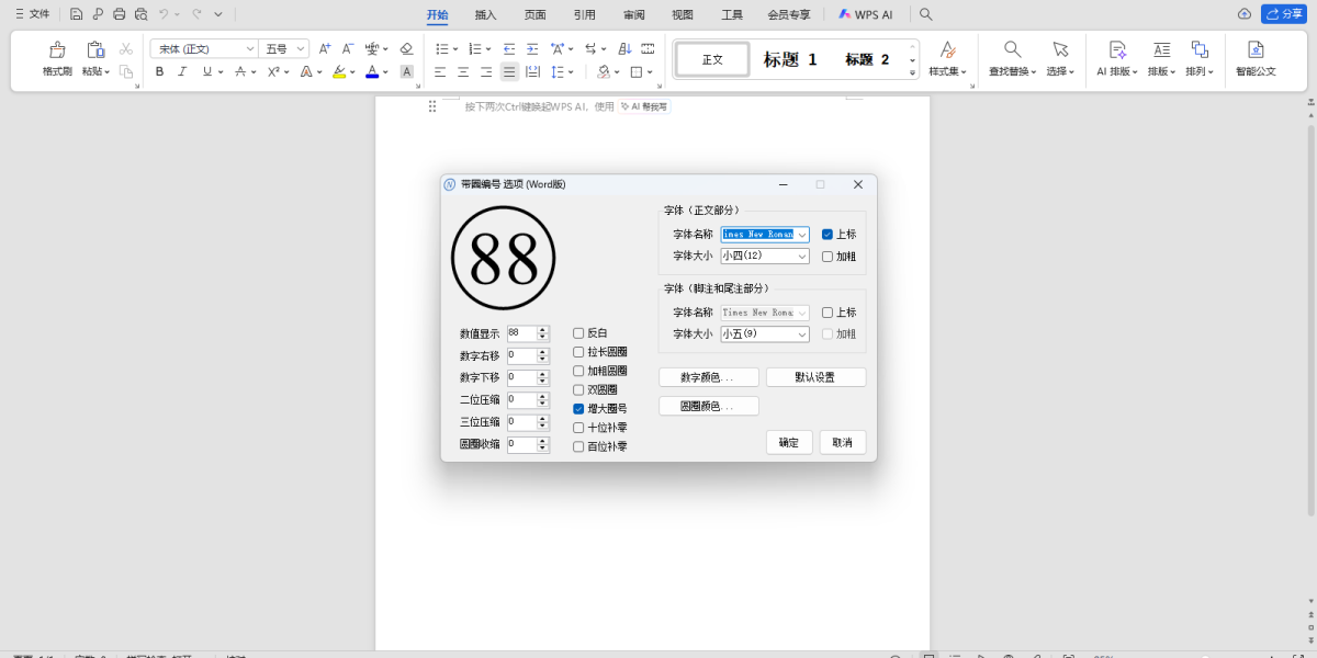 提供带圈编号样式自定义选项,包括圆圈样式调整与数字格式设置。