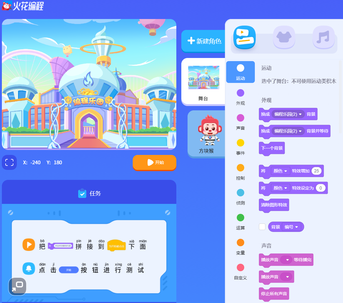 火花编程是一款好用的幼儿编程软件,火花编程电脑版之中用户可以从小孩就培养编程学习意识,在软件之中有着动画与各种编程游戏,让小孩可以理解如何进行图形变成入门,在软件之中非常多设计项目,让孩子学习知识后可以进行实践操作。