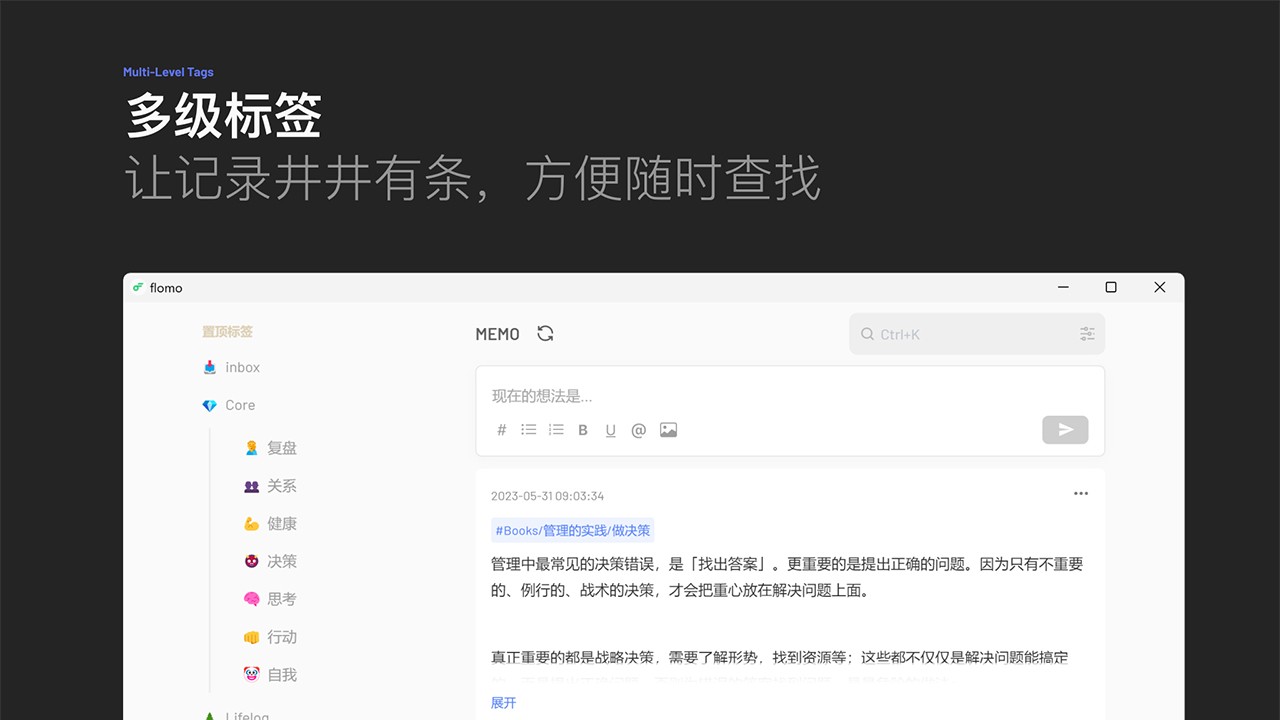 提供多级标签系统与智能文件夹,支持嵌套分类和关键词快速检索。
