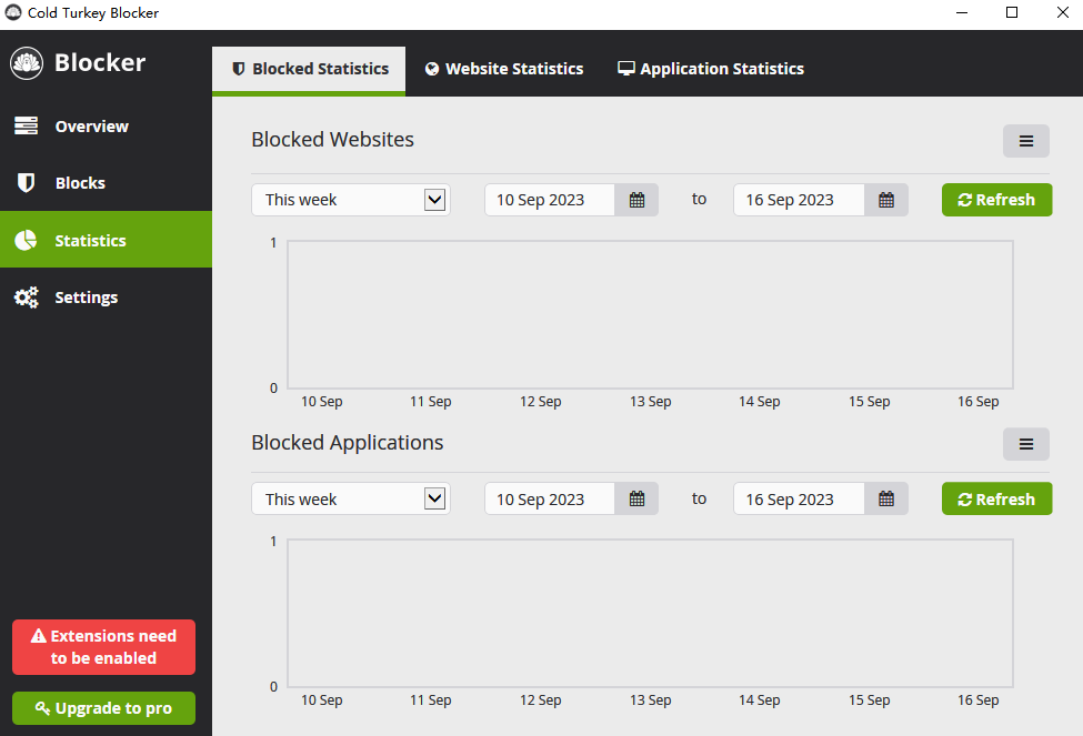 Cold Turkey有自我监控和报告功能,用户可以查看自己屏蔽了哪些网站,花了多少时间在不同的应用或网站上,这些反馈可以帮助用户更好地了解自己的使用习惯,并调整时间管理策略。