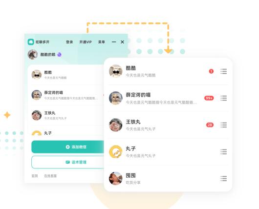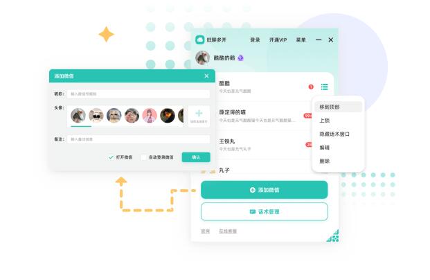 旺聊多开是一款好用的微信多开软件,旺聊多开电脑版之中用户可以在软件之中进行微信登录,软件可以登录多个微信,在用于社群、客服等等客服工作上非常好用,可以有效帮助用户进行工作。