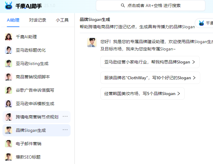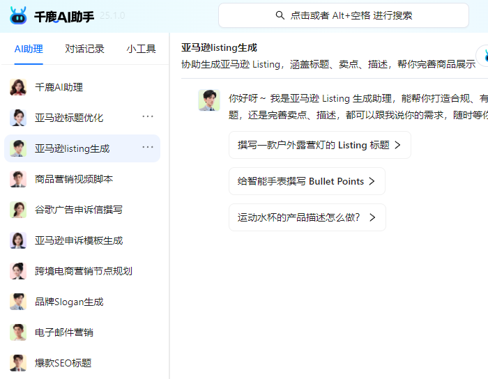 千鹿AI助手是一款好用的AI工具,千鹿AI助手电脑版之中用户可以在软件之中进行电商处理,软件有着很好用的电商标题产品获取,在软件之中有着很多好用的功能,可以协助好跨境电商进行工作。