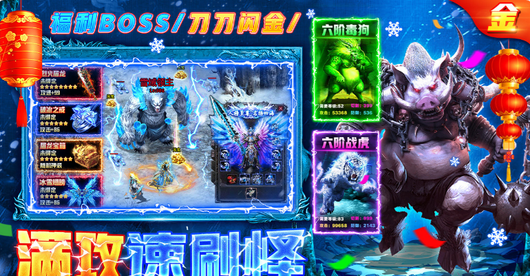 跨服乱斗系统打破服务器限制,玩家可与其他服务器玩家竞技,挑战高难度首领有机会获得稀有装备和资源。