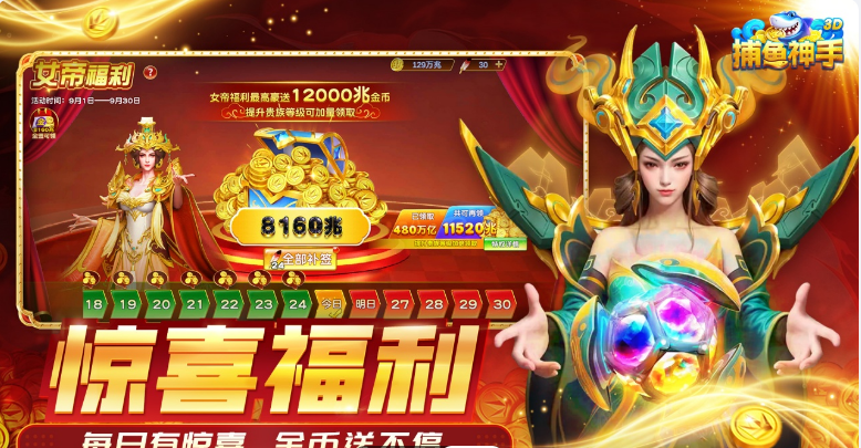 设有每日登录奖励与限定活动,投放高倍率稀有鱼类