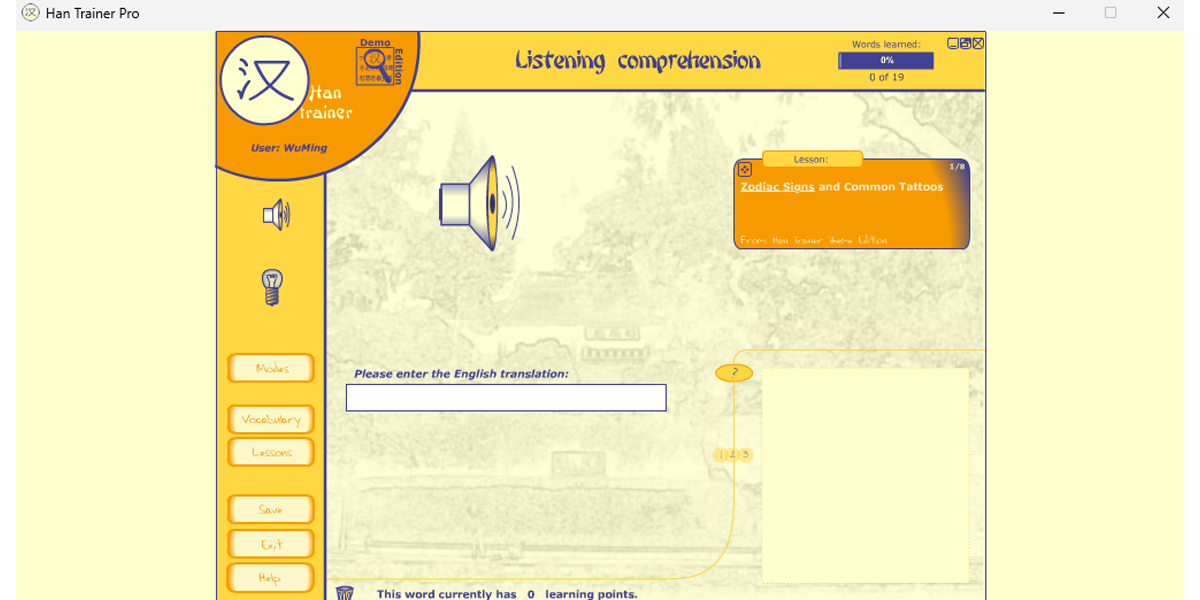Han Trainer Pro是一款好用的汉语学习软件,Han Trainer Pro电脑版之中用户可以在软件之中学习简单的汉语内容,从简单的拼音开始教学,到复杂的句子词组,让用户可以理解汉语的语言习惯,打好汉语基础内容。