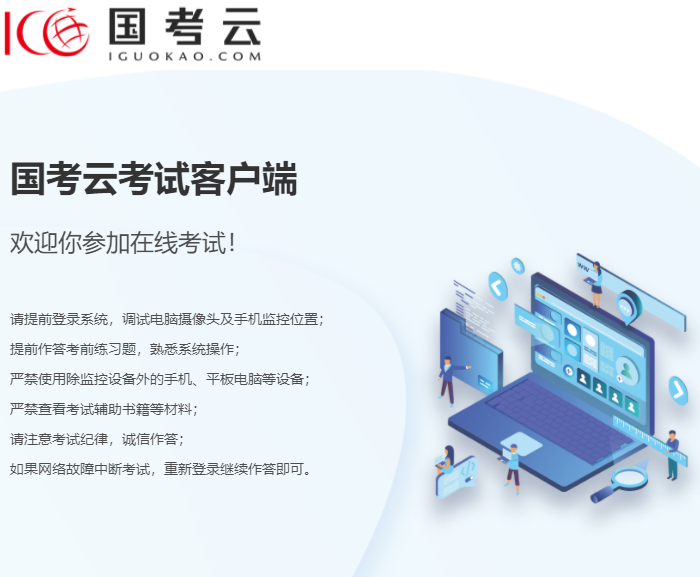 国考云是一款很好用的考试软件,国考云电脑版之中用户可以在网上进行各种考试,软件有着360°无死角监控能力,让学生的考试环境可以更加公平公正,软件收集历年真题数据,可以让用户进行模拟测试,更容易通过考试。