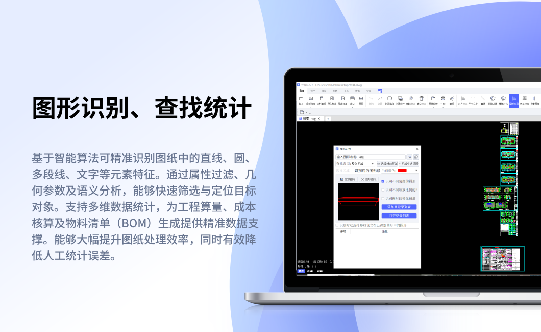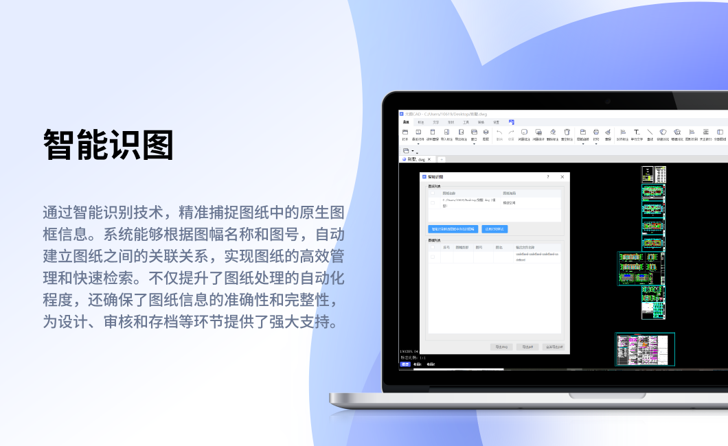 快速测量工具和智能识图,帮助用户精准显示数据并支持图纸拆分,显著提升设计效率与质量。