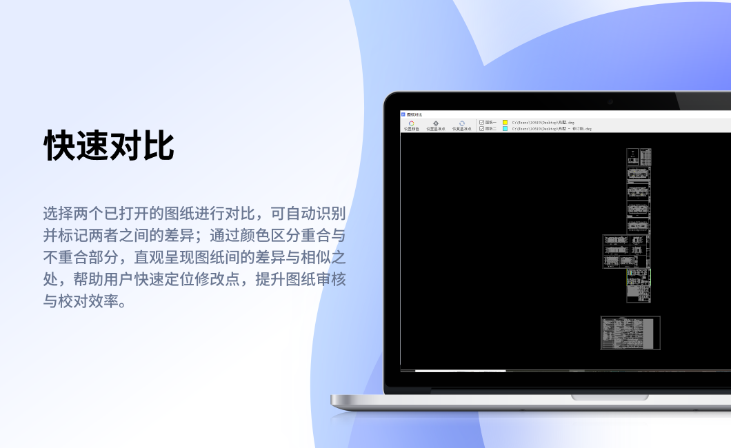 智能图纸对比能力,采用高精度差异识别技术,自动标注修改内容,支持多版本比对以满足审查需求。