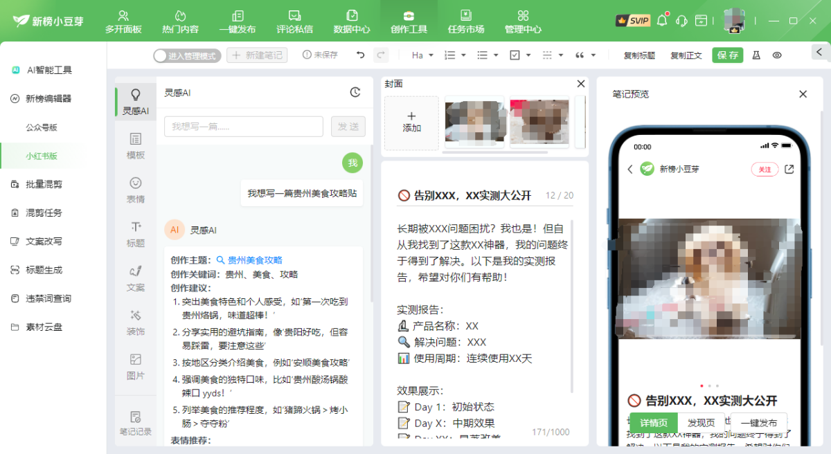 新榜小豆芽内置多种高效实用的内容模板,帮助用户快速生成符合平台需求的文章、推文或其他内容格式,提升创作效率,提供丰富的图片、图标、插图、视频等素材库,用户可以直接使用这些素材,丰富内容的视觉效果。