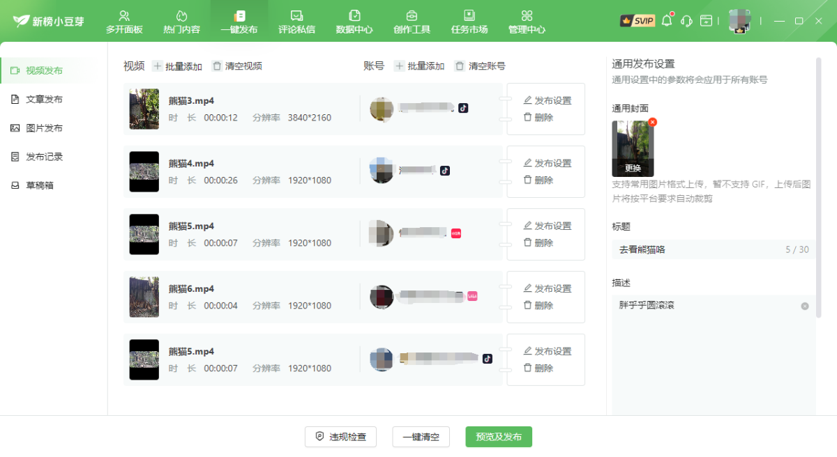 新榜小豆芽是一款很好用的新媒体工具,新榜小豆芽电脑版之中用户可以在软件之中管理好新媒体账号,软件支持绑定多平台的账号发布,可以一键发布图文视频内容,让用户可以轻松完成新媒体发布工作。