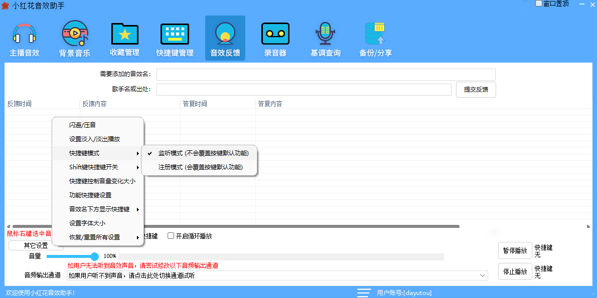 小红花音效助手提供简单明了的操作界面,主播可以快速上手,轻松选择和触发音效,支持自定义快捷键,主播可以通过按键触发特定的音效,提升直播效率。