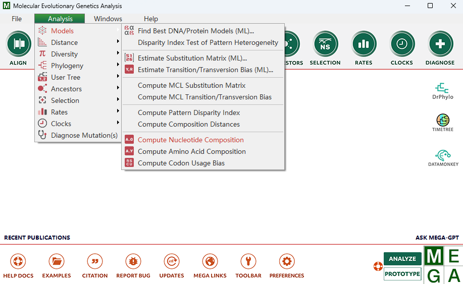 系统发育推断和进化模型选择等功能,可通过分子钟定年分析物种分化时间并检测自然选择信号。