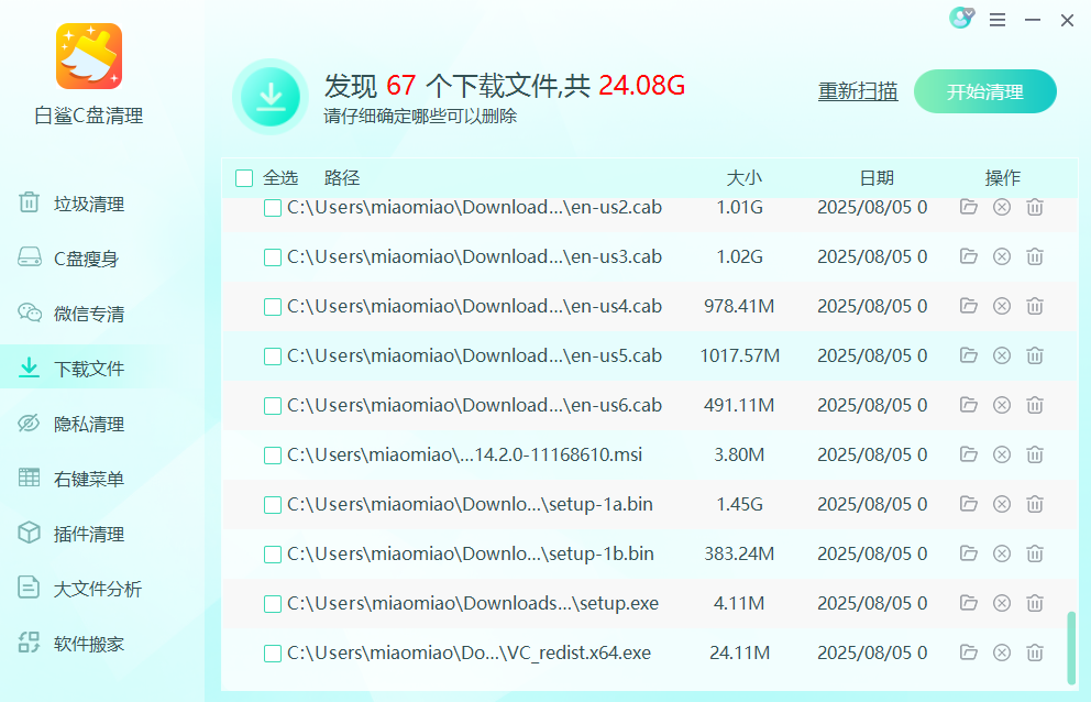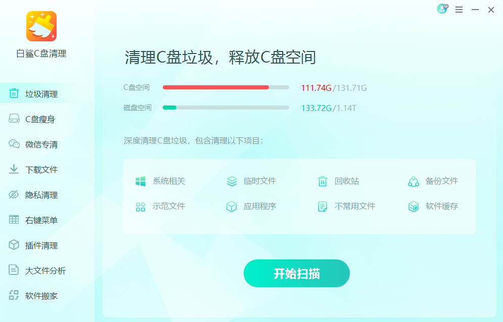 白鲨C盘清理是一款专业卸载清理软件,白鲨C盘清理电脑版之中用户可以快速清理设备缓存内容,软件支持软件进行设备磁盘清理,帮助用户快速解决成C盘过于杂乱,内容过多的问题,帮助用户解决C盘负担。