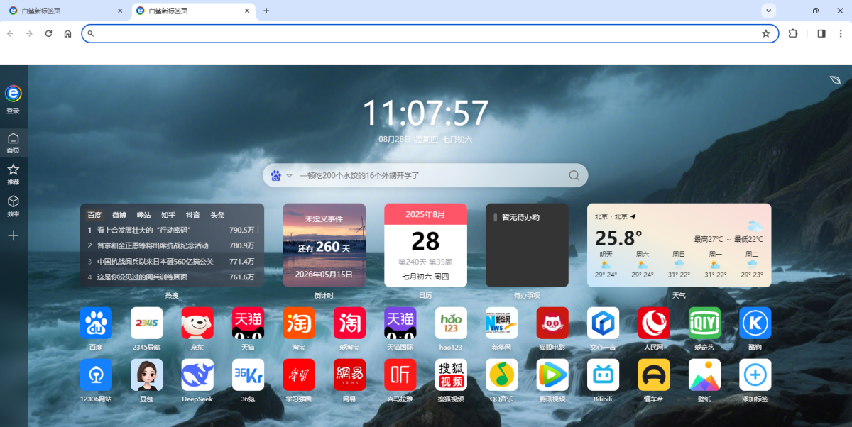 个性化标签页功能允许用户自定义主页背景、快捷链接布局和书签分组,轻松管理常用网址,并实现跨设备数据同步。