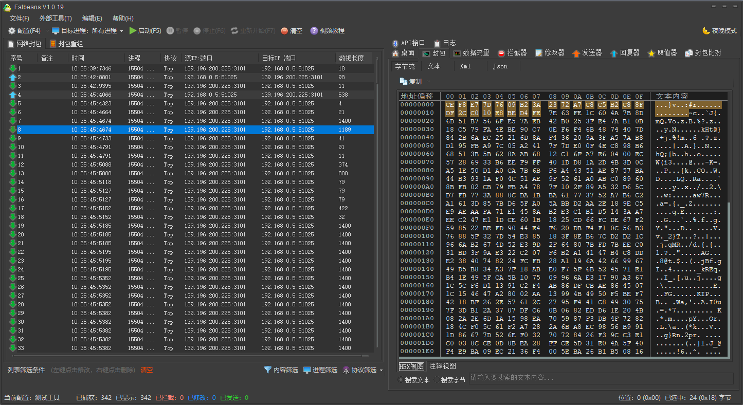 Fatbeans是一款功能强大的网络抓包工具,Fatbeans电脑版可以根据各种协议进行数据包解码,实时直接捕捉流量数据内容,帮助用户快速进行内容过滤,从而可以测试得出网络数据以及接口的相关情况。