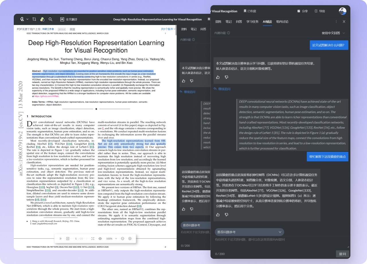 内置AI阅读助手可解析论文、一键定位图表与引文,并支持高亮和记笔记。