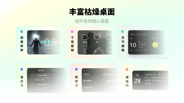 支持创意鼠标样式、任务栏美化自由调节,可自定义任务栏颜色与不透明度;还有多款个性化桌面主题可选,能根据喜好打造独属视觉风格,轻松摆脱单调默认桌面,让电脑桌面充满设计感。